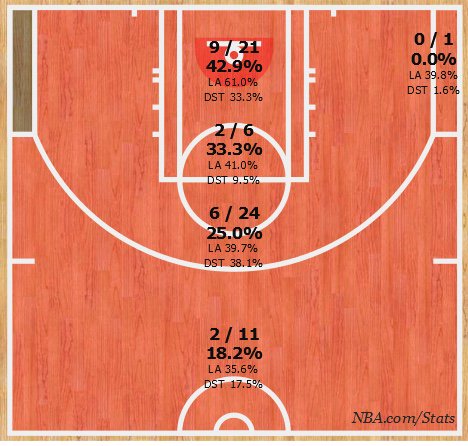Yeah, and you thought 45.0 percent at the rim was bad. Smith does have a higher percentage of his shots at the rim, so that’s why he’s at 30.2 percent from the field and not below 29 like Smart. However, he should not be taking that many mid-range shots.